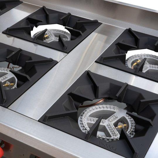 Eficiencia, resistencia y control total al alcance de tu mano. Nuestro anafe industrial a gas ha sido creado para cocinas que no se detienen, donde cada segundo cuenta y cada preparación exige calidad. Su estructura de acero inoxidable no solo aporta una estética limpia y profesional, sino que también garantiza una durabilidad excepcional frente al uso intensivo y a las exigencias del trabajo diario. Equipado con quemadores de 180 mm, ofrece una llama potente y uniforme que responde con rapidez, ideal para preparaciones de alto volumen y cocción precisa. La válvula de control de gas y su perilla de 3 mandos te brindan un dominio absoluto del fuego, adaptándose a diferentes técnicas culinarias. Y porque la seguridad es esencial, incorpora una termocupla que corta el gas automáticamente ante cualquier fallo en la llama, cuidando tanto a tu equipo como a tu cocina. Este anafe no es solo una herramienta: es la base firme sobre la que se construyen grandes platos y mejores negocios