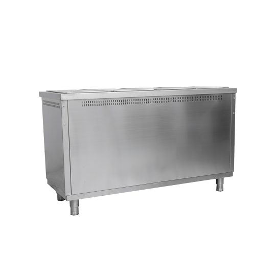 Este baño maría, con su estructura en acero inoxidable, es el aliado perfecto para tus creaciones culinarias, combinando resistencia y elegancia.