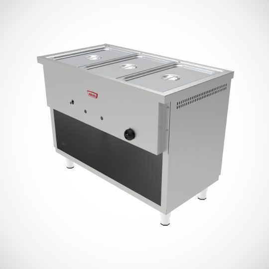 Módulo Baño María Construido íntegramente en acero inoxidable, posee 3 depósitos GN 1/1, 20 litros cada uno.