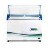 Marco superior de aluminio anodizado con cabezales de plástico ABS curvos con sistema de anti condensación que evita la pérdida de frío.