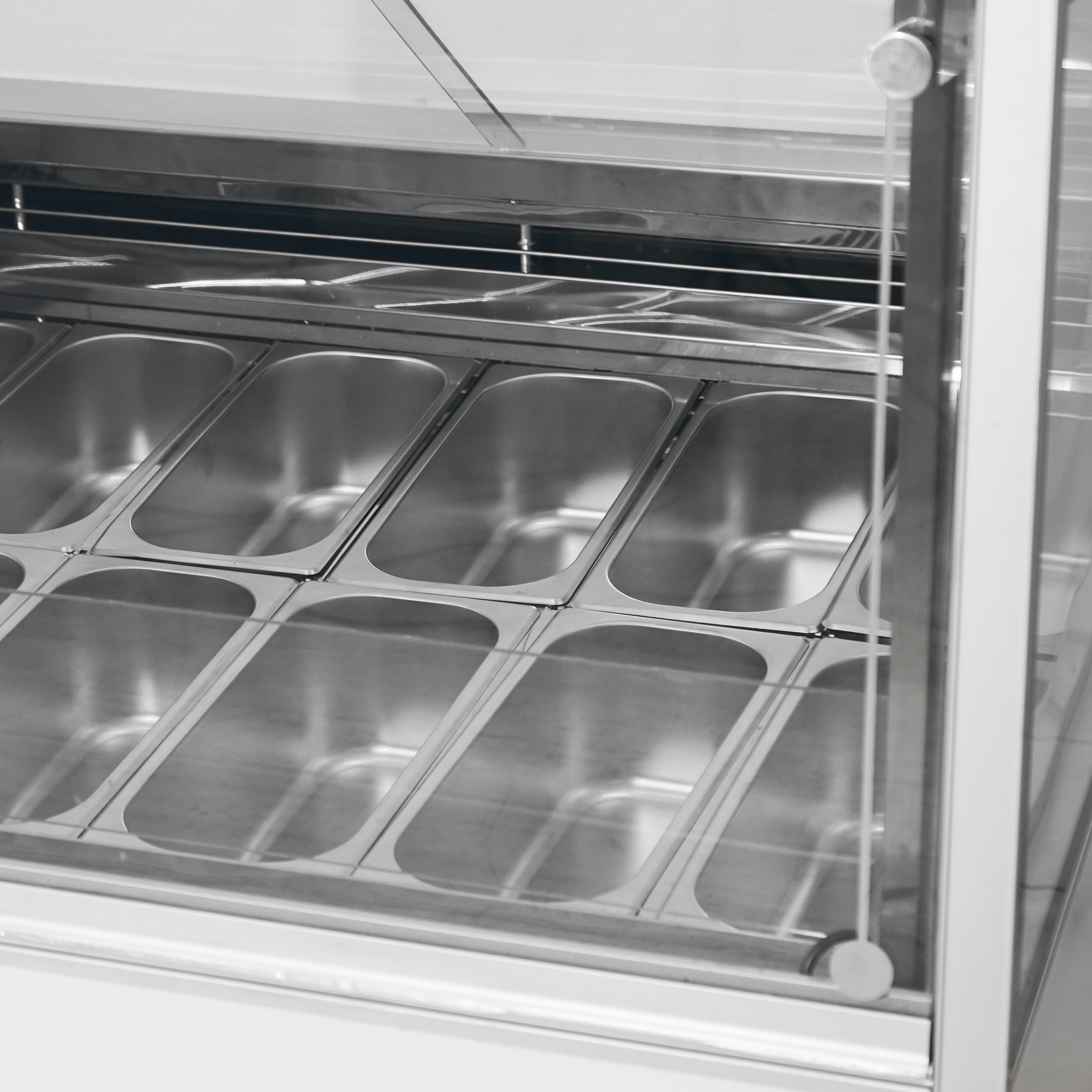 La vitrina expositora de helados está diseñada para exhibir y conservar helados de manera eficiente, asegurando siempre la mejor presentación.