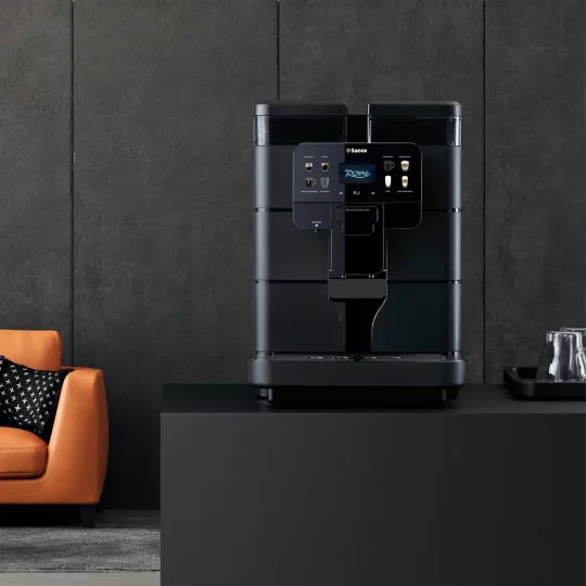 Royal OTC es la máquina de café “del grano a la taza” perfecta para pequeñas oficinas gracias a su diseño, tamaño y pantalla con fotos realistas. Esta versión cuenta con OTC (onetouchcappuccino).