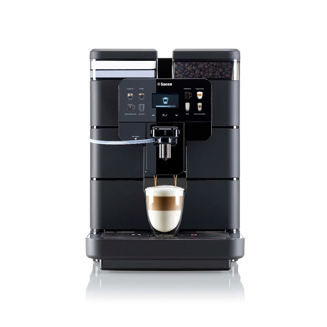 Royal OTC es la máquina de café “del grano a la taza” perfecta para pequeñas oficinas gracias a su diseño, tamaño y pantalla con fotos realistas. Esta versión cuenta con OTC (onetouchcappuccino).