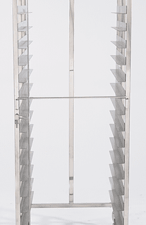 Conoce nuestros bandejeros de acero inoxidable, ideal para optimizar espacios donde haya una mayor producción. Nuestros carros tienen la capacidad de soportar 16 bandejas, además cuenta con 4 ruedas para facilitar su desplazamiento. Recomendada para toda cocina con altos procesos de producción.