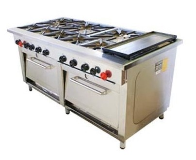 Cocina Industrial 8 Quemadores con 2 Hornos y Plancha
