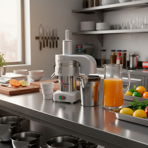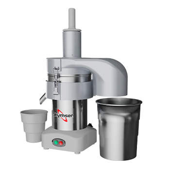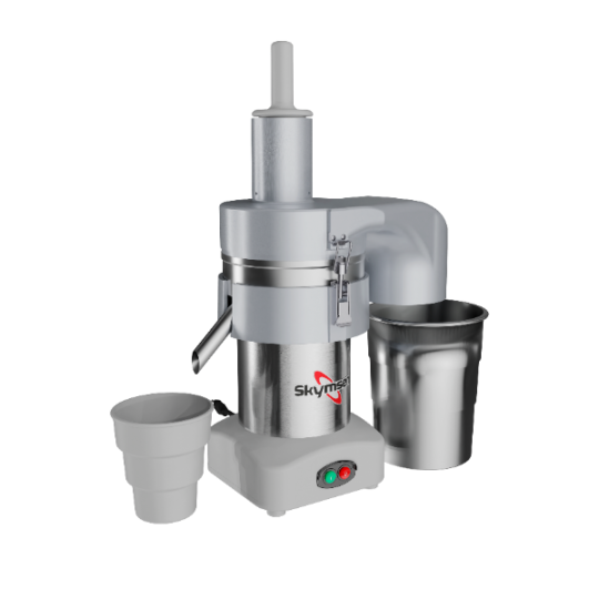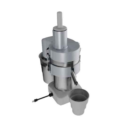 Construido para durabilidad y rendimiento, el CSE cuenta con un gabinete, cámara de líquido y colador en acero inoxidable, lo que garantiza higiene y longevidad. La cámara robusta está fabricada en aluminio fundido a presión, mientras que el recolector de residuos también es de aluminio. Con su boca de alimentación extra ancha, introducir frutas y verduras es sencillo y eficiente. El sistema de seguridad integrado garantiza una operación segura, convirtiendo al CSE en una opción confiable para cualquier cocina comercial o bar de jugos.