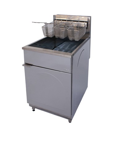 Freidora fabricada íntegramente en acero inoxidable. Es un producto de funcionamiento a gas con alto rendimiento y bajo consumo. Es utilizada comunmente en cocinas y restaurantes de comida rápida.