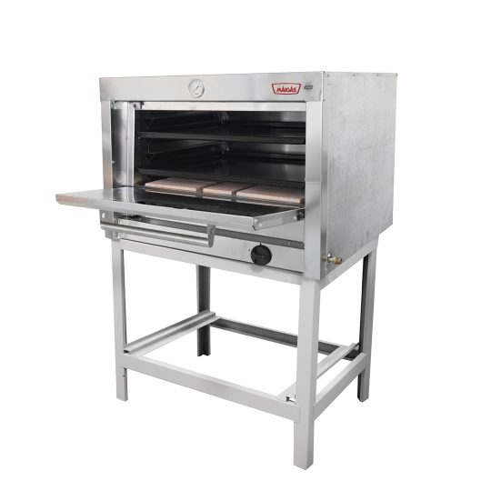 La cámara del horno industrial está fabricada completamente con acero inoxidable, su aislamiento termico de lana mineral permite lograr temperaturas ideales, con una cocción pareja.
