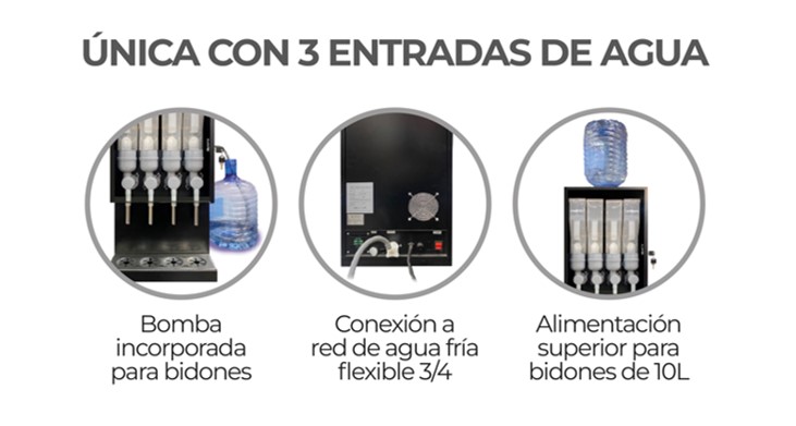 - Única con 3 entradas de agua: