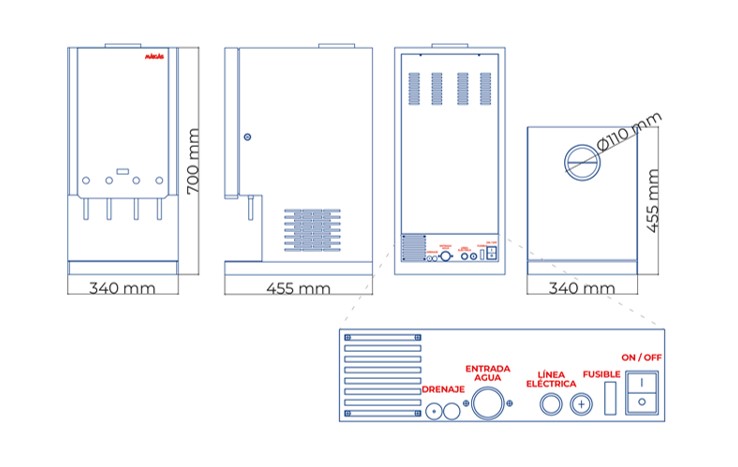 - Gran productividad: Rinde hasta 300 vasos de 220 cc por hora.